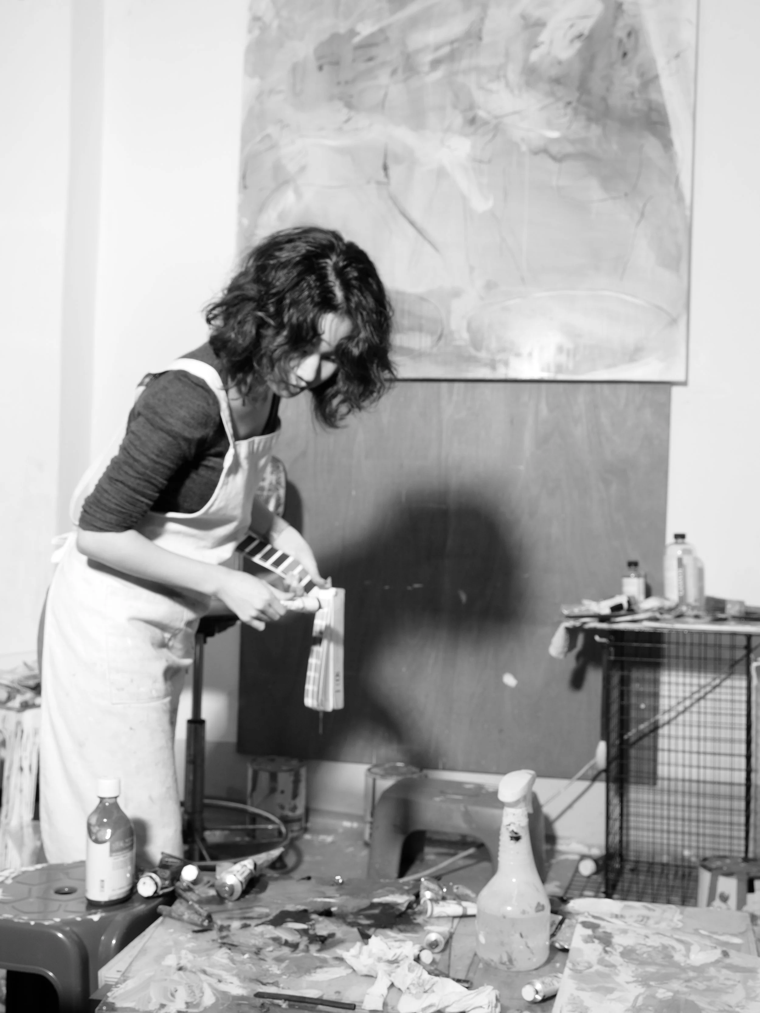 of imitation, and the artist throws herself, her painting, and the viewer into it like stones emerging on the surface of water. As the most pure way to transfer her nuances, which undergoes much projection and permeation in the artist’s process, becomes the surface where this rock skipping can begin, gently rippling.