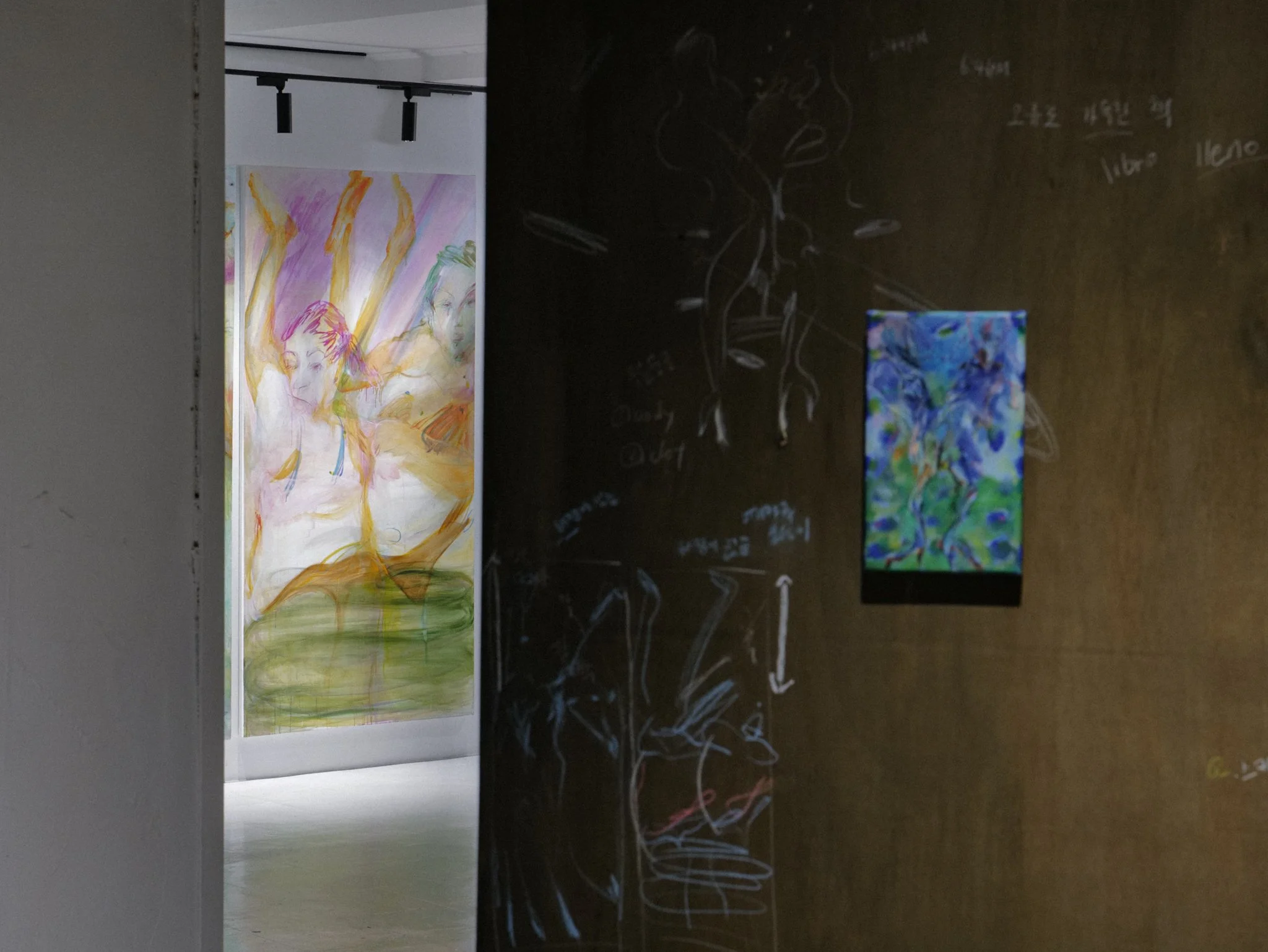 캔버스로 옮기며 작가는 작은 종이 위에 추었던 움직임을 다시 기억하며 또 한 번 춤 춘다.