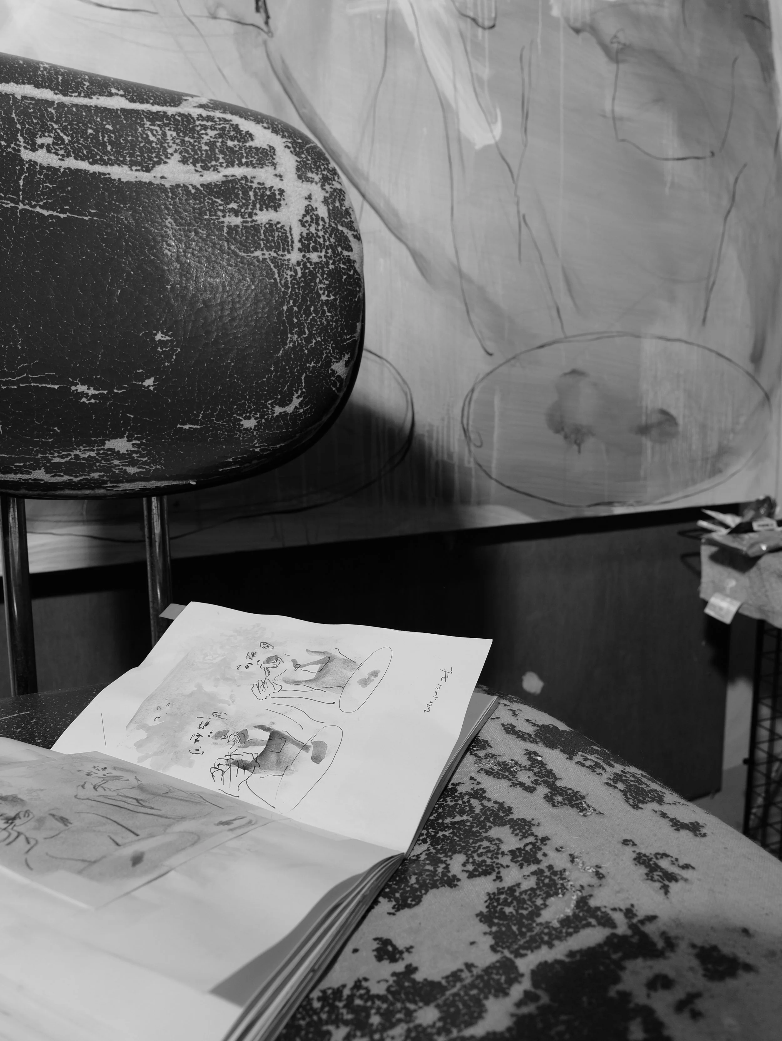 반복되는 움직임과 나눈 대화는 문장과 단어를 오가며 드로잉 옆에 흔적을 남긴다. 그리고 이를