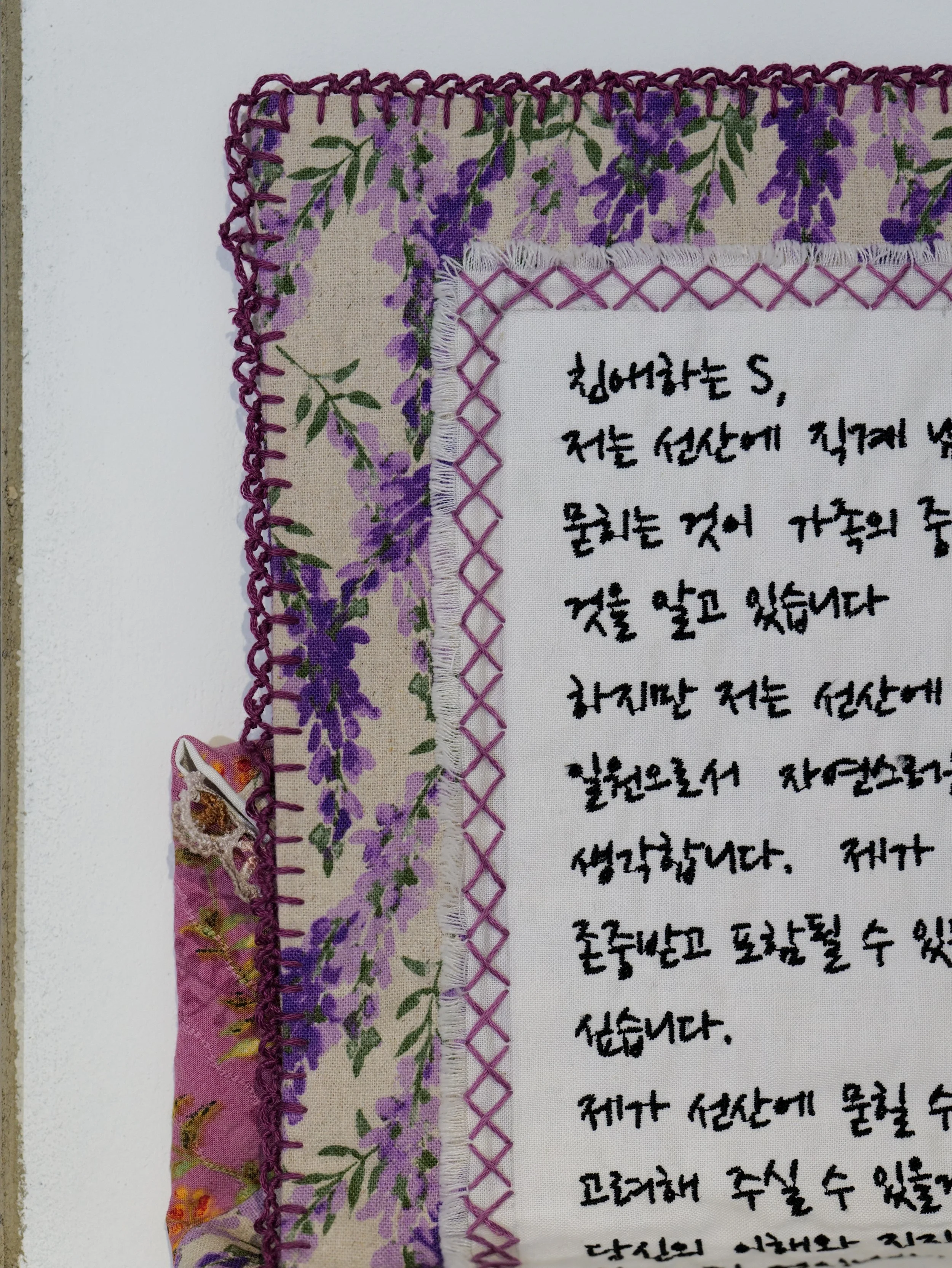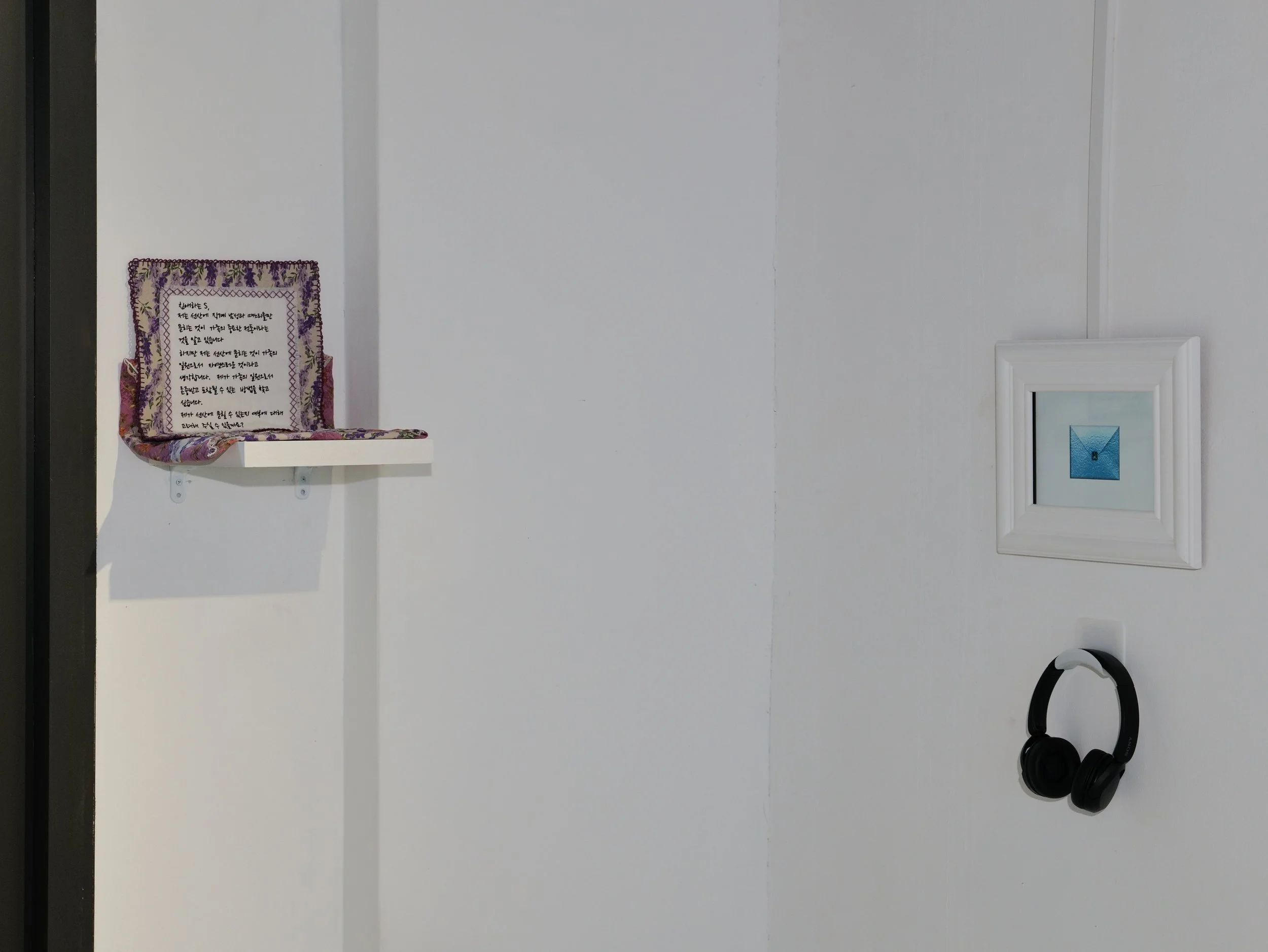 Jiwoo Ryu likens the intangible human mind to digital data—something that cannot be generated or perceived without a device. The artist attempts to define the mind through this analogy, trying to make 'heartfelt' letters generated by ChatGPT and observing the reactions they provoke. Then she transcribes these letters onto windows using her own body temperature using petrolatum. Rhy seeks to uncover the invisible yet undeniably present mind—something neither seen nor touched.