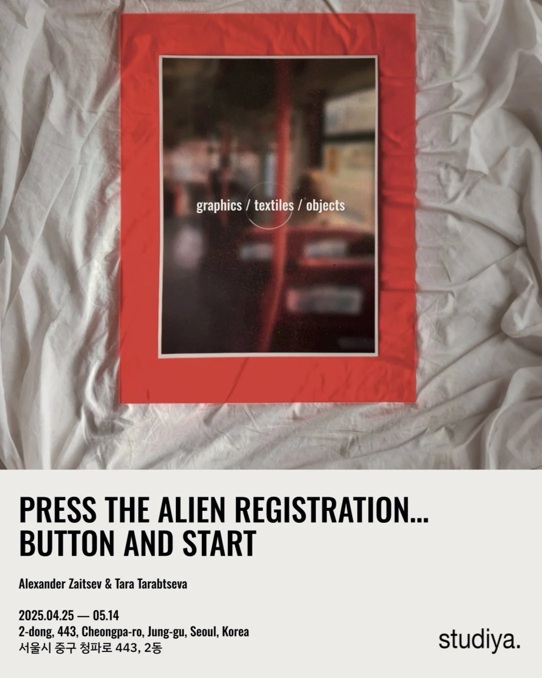 처음 작가들은 그래픽과 섬유라는 제한된 매체만을 활용하는 간결한 구성으로 전시를 구상했다. 그러나 ‘서울’이라는 도시는 계획에 없던 방식으로 구상에 스며들었다. 높은 밀도와 복잡한 환경, 일상 속 요소들이 전시를 준비하는 과정에서 자연스럽게 스며들었다. 거리에서 발견한 사물들과 우연히 수집한 오브제들은 전시 공간의 일부가 되었으며, 스투디야는 서울의 생동하 는 리듬을 아카이빙하는 공간으로 변모한다. 모스크바(작가들의 고향)는 더이상 거대한 도시라기보다는 희미한 시뮬라크르 (simulacrum)처럼 자리하게 된다.