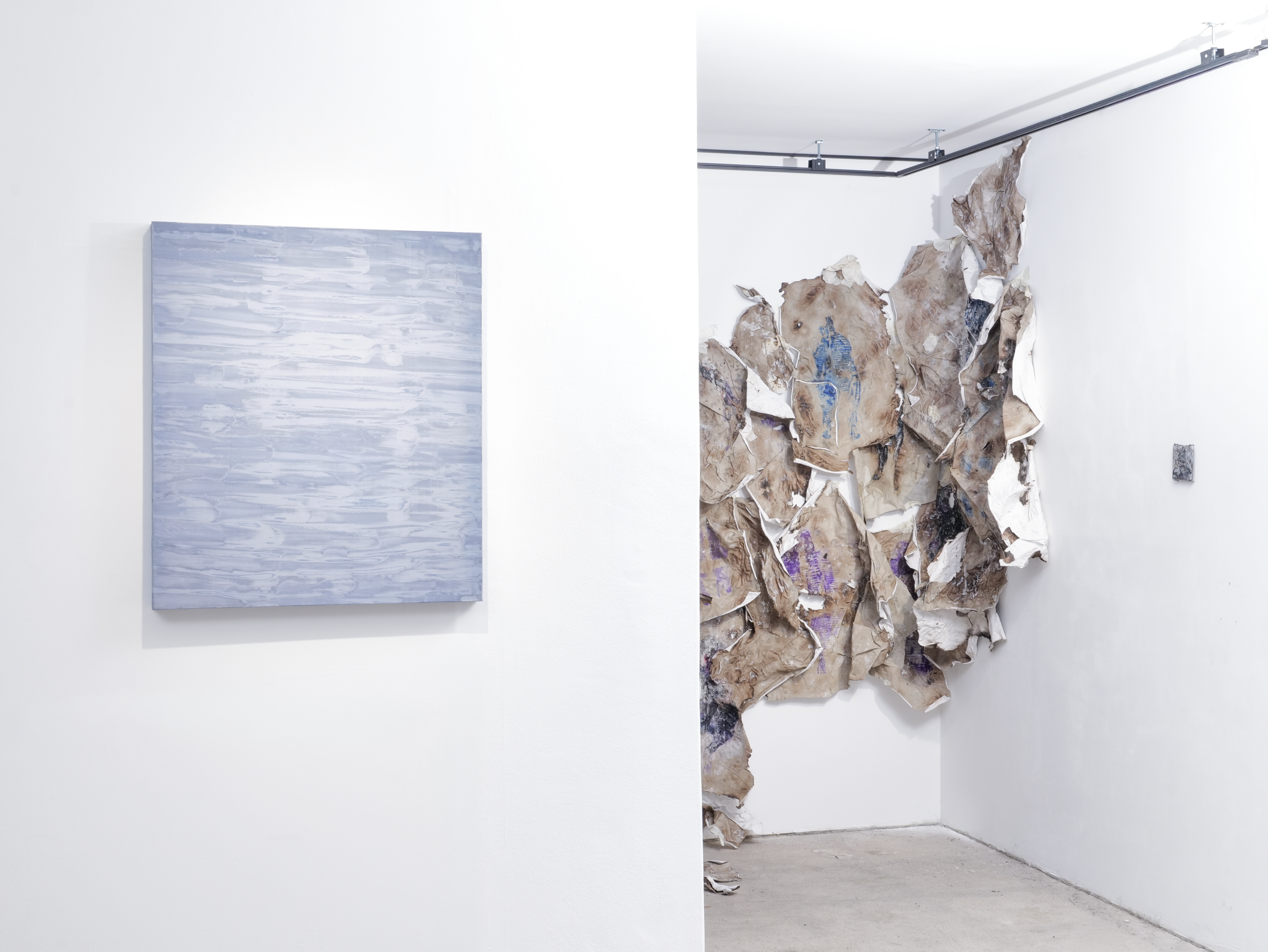 참여 작가들의 작업은 이러한 주제를 구체적인 ‘물질 실험’으로 확장한다. 수스카 바스티앙은 야자수 껍질과 직물을 결합해 자연과 인공이 교차하는 경계를 드러내며, 생물적 흔적과 산업적 질감이 공존하는 구조를 만든다. 곽지수는 종이, 철사, 비닐 등 이질적인 재료를 엮어 신체의 움직임, 결박, 긴장을 동시에 다루며, 행위의 흔적이 물질의 균형 속에 새겨지는 과정을 시각화한다. 서테일러현기는 캔버스를 불태우고 긁어내며, 작가의 통제 밖에서 발생하는 물질의 변화와 우연적 흔적을 회화의 일부로 끌어들인다. 김하연은 콘크리트, 털, 물을 함께 사용해 단단한 구조 안에 유기적 호흡을 주입하며, 무기질적 물질이 생명체처럼 반응하는 과정을 탐구한다.